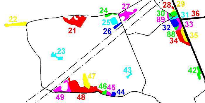 | 43-45,48 | white pine: planted at 2 spacing, 16 cm DBH, 10 m tall |