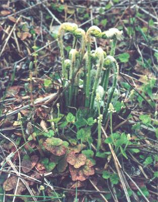 | Club mosses, such as these Lycopodium obscurum found along the trail, appeared on earth 400 million years ago, long before the seed trees you see around them. |