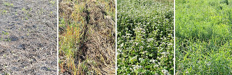the four areas 13 August 2010: tilled, cut, spring buckwheat left, buckwheat missed in spring |