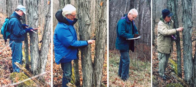 writing everything down, Len Collett marking the tree as recorded.