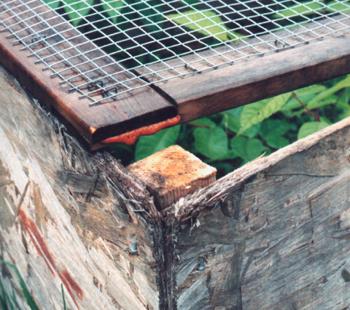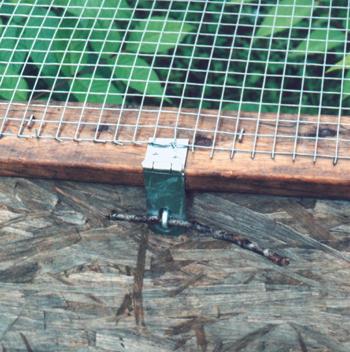 with the short pieces inside the long ones, then staple the wire mesh onto them. Fasten a hasp to the